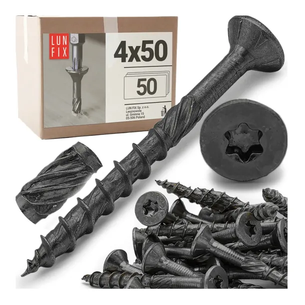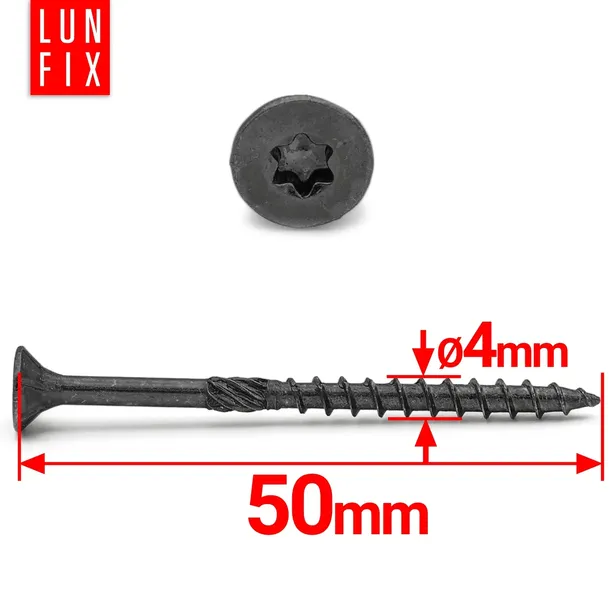 Wkręty ciesielskie 4x50 do drewna czarne ocynk TX20 stożkowe 50szt.